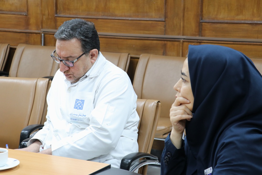 این جلسه با حضور دکتر علی صادقی نیا مشاور اجرائی ریاست، زهره قوامی آزاد مدیر و برخی مسئولین اجرائی بیمارستان برگزار شد.
