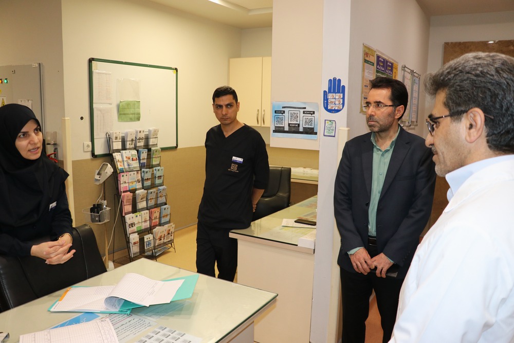 دکتر رسولی با حضور در بخش‌های بستری، اورژانس، درمانگاه‌ها و اتاق‌های تخصصی، ضمن گفت‌وگو با کارکنان و اعضای کادر درمان، نکاتی را پیرامون بهبود فرآیندهای مراقبتی و انطباق با استانداردهای اعتباربخشی یادآور شد.