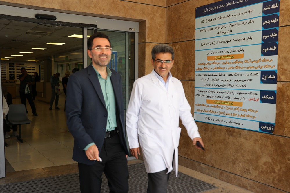 در این بازدید، دکتر سید ناصر عمادی، رئیس بیمارستان پوست رازی، به همراه جمعی از مسئولین بیمارستان، از جمله طاهره آشتاب، مدیر پرستاری، دکتر رسولی را همراهی کردند.