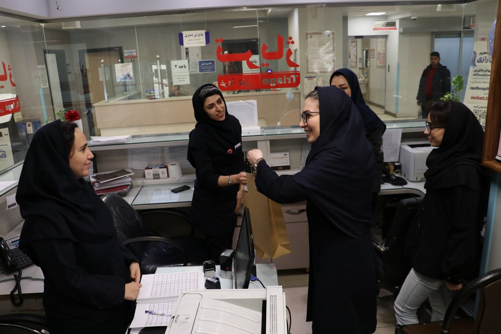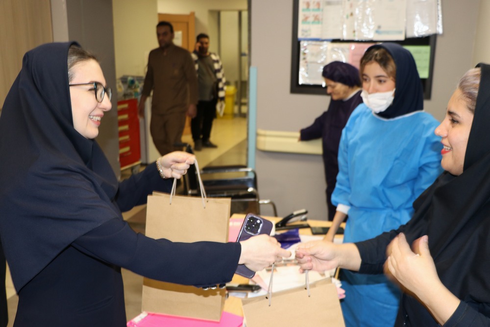 همچنین طاهره آشتاب مدیر پرستاری و شیوا عبدالله‌نژاد مسئول بهبود کیفیت، در ادامه این بازدیدها همراه مدیر بیمارستان در جمع بانوان حضور یافتند و بر اهمیت جایگاه زنان در نظام سلامت و نقش پررنگ آنان در ارائه خدمات درمانی و اداری تأکید کردند.